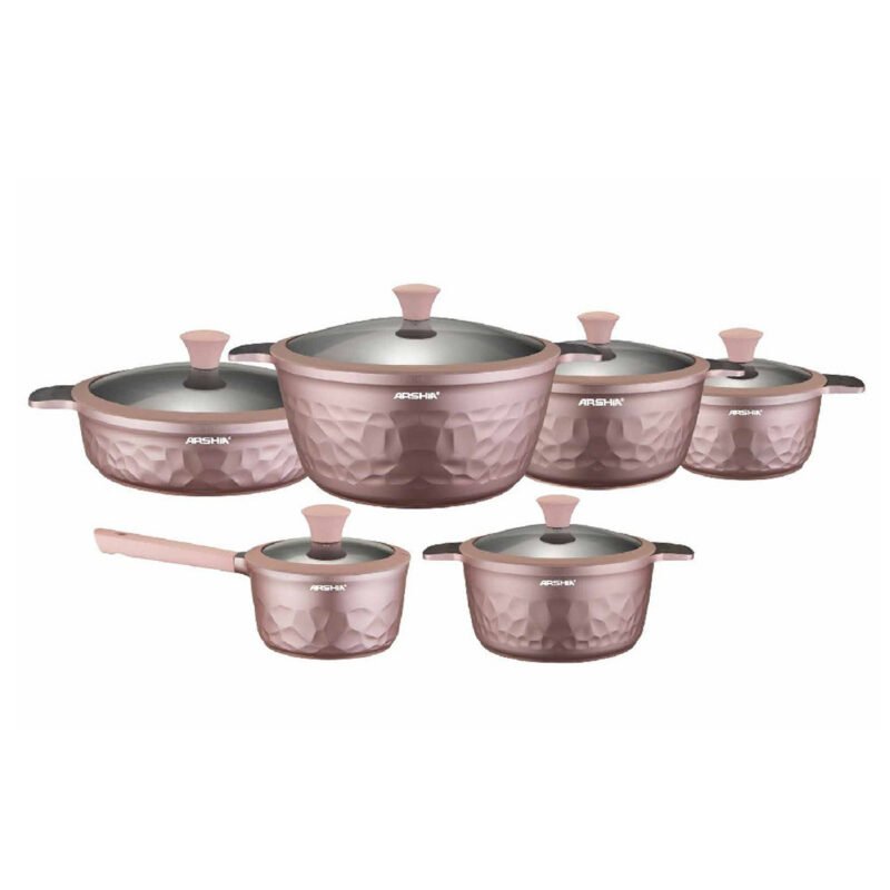 Arshia 12-piece Pink,Gray & Green Diamond Cookware Set